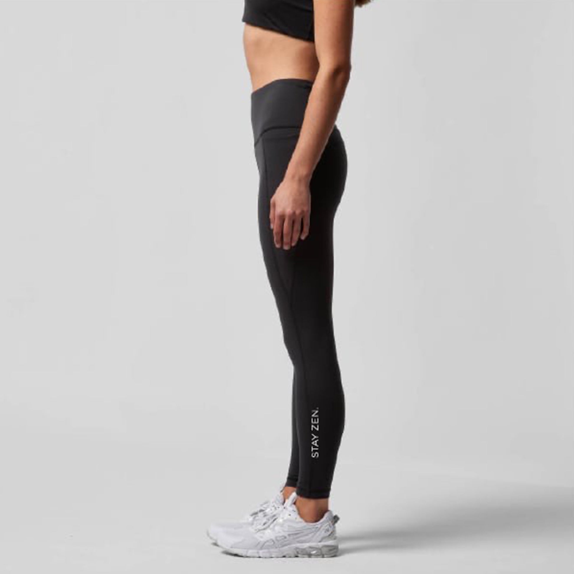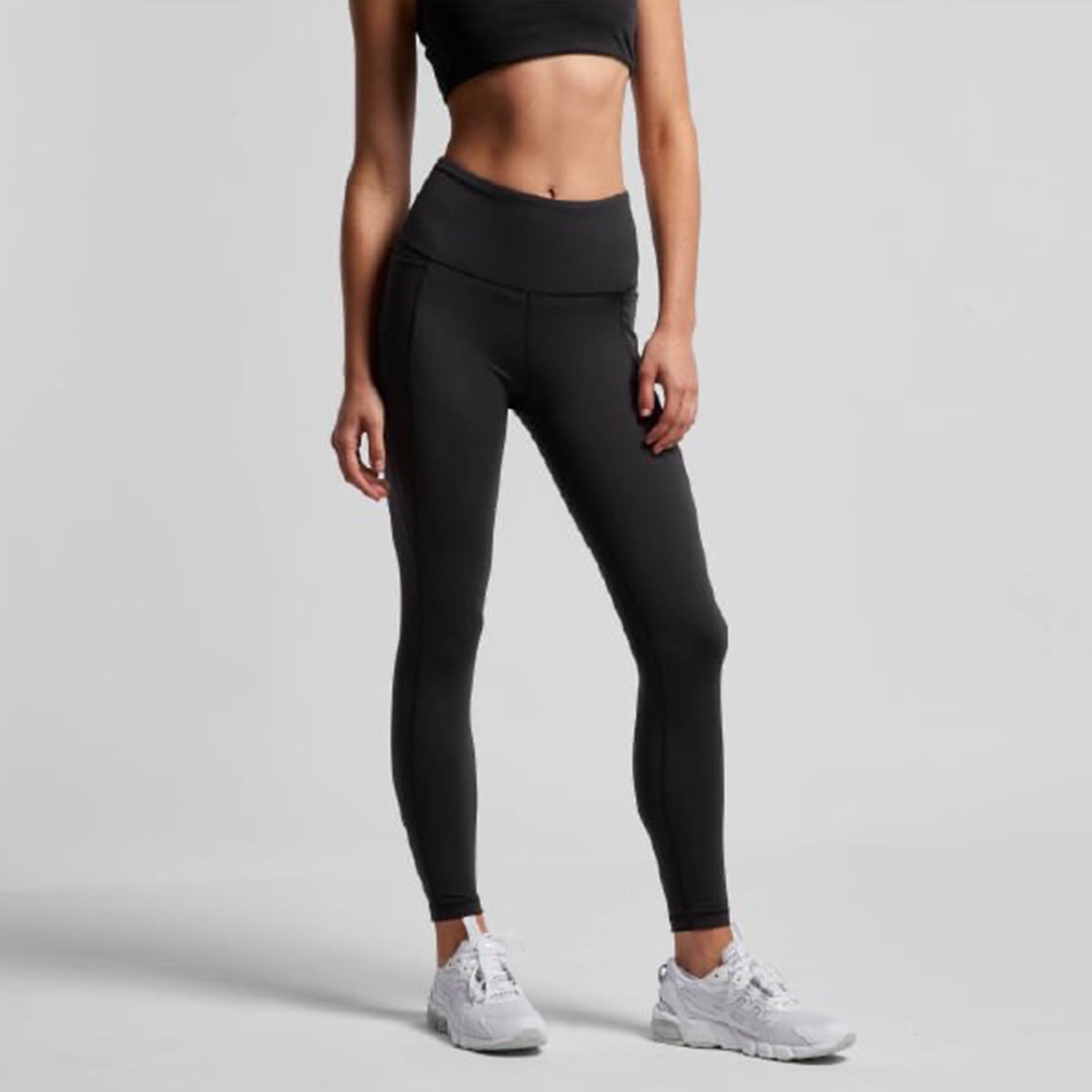 Matte finish, 7/8 length, high waist, 2 x side pockets, contour seam detailing, moisture wicking, quick drying, high elastane content for resilience, suitable for low to medium impact activities.