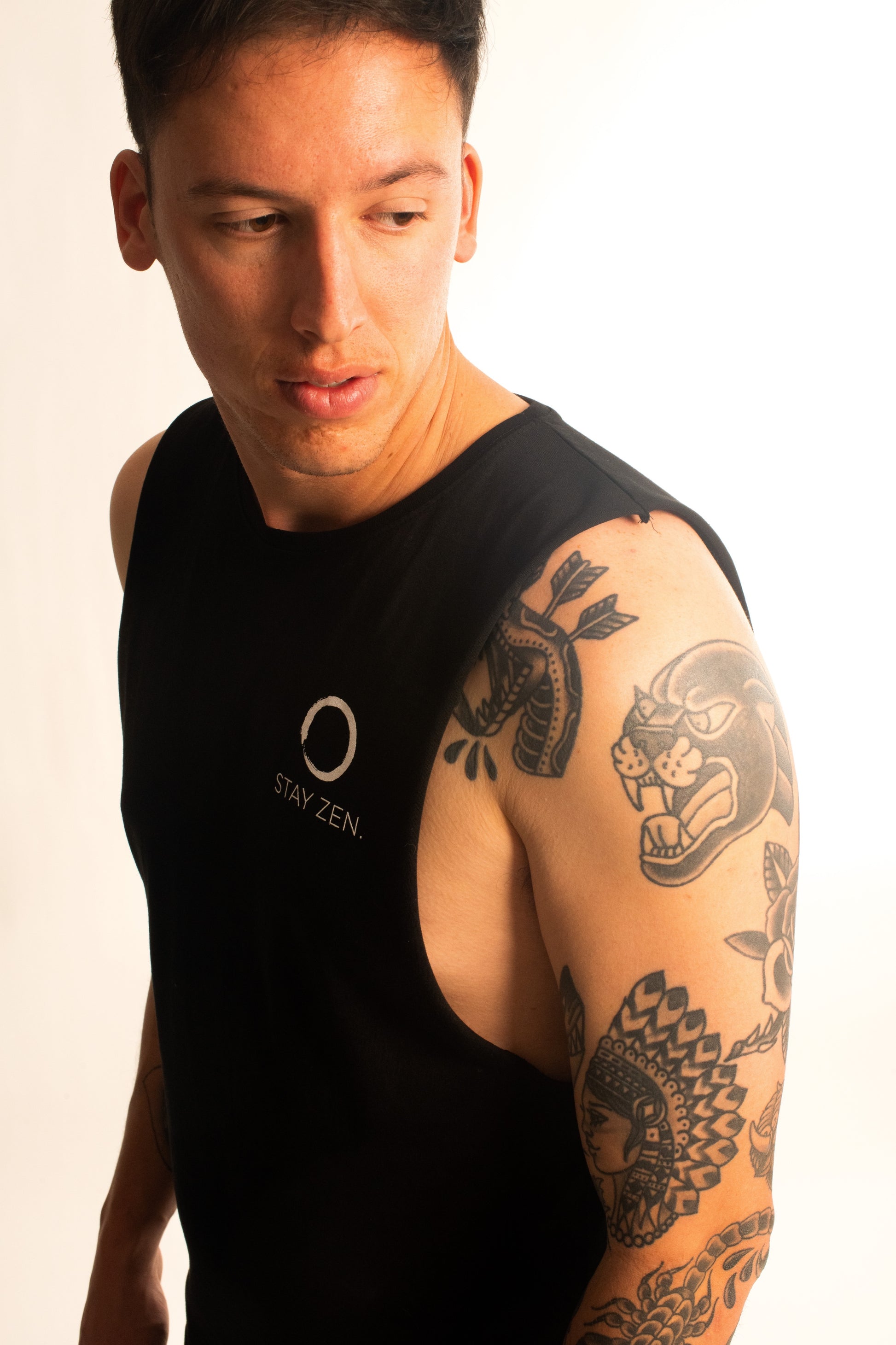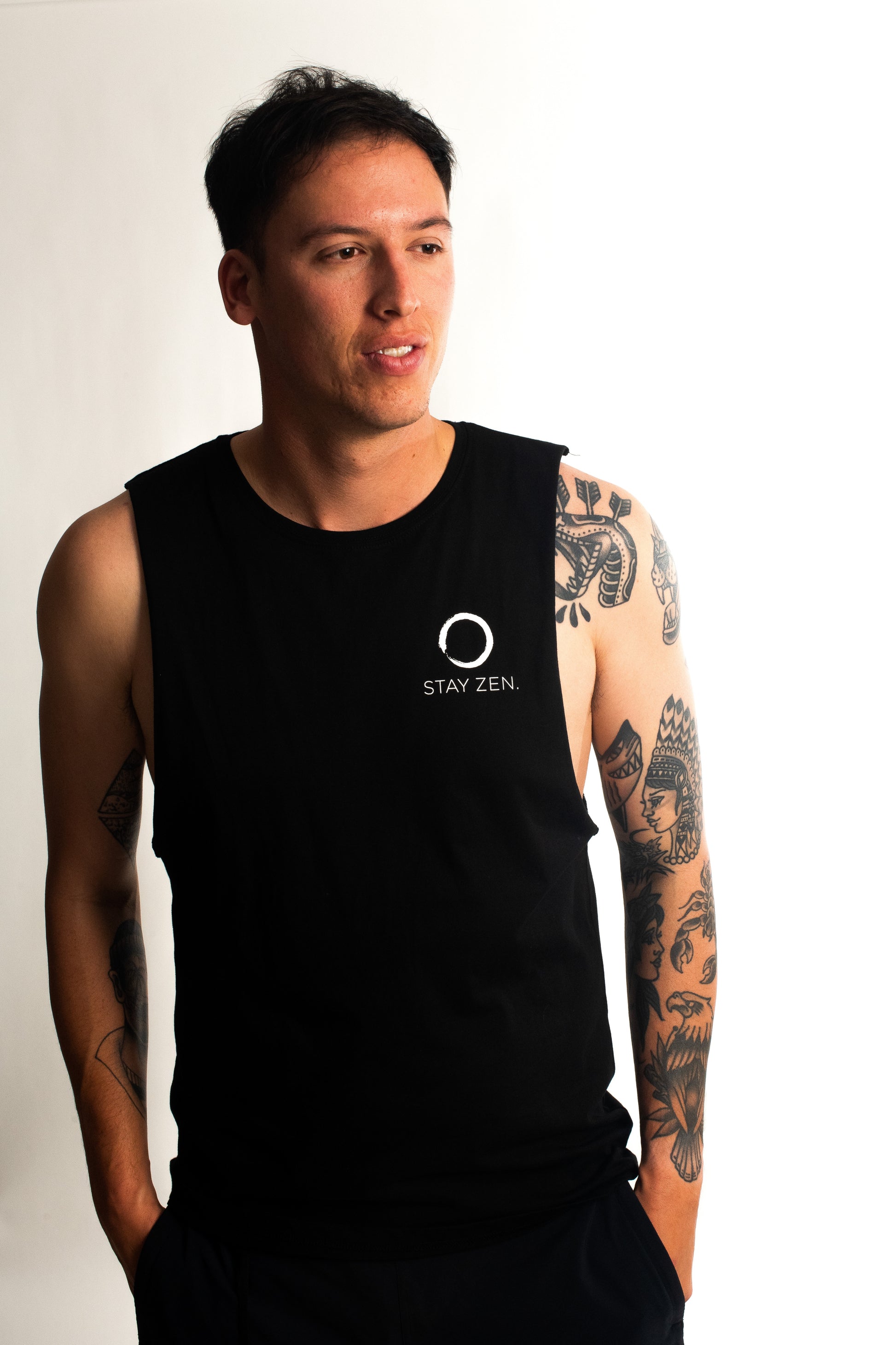 Sleeveless tank, raw armhole edges, neck ribbing, double needle bottom hem, preshrunk to minimise shrinkage