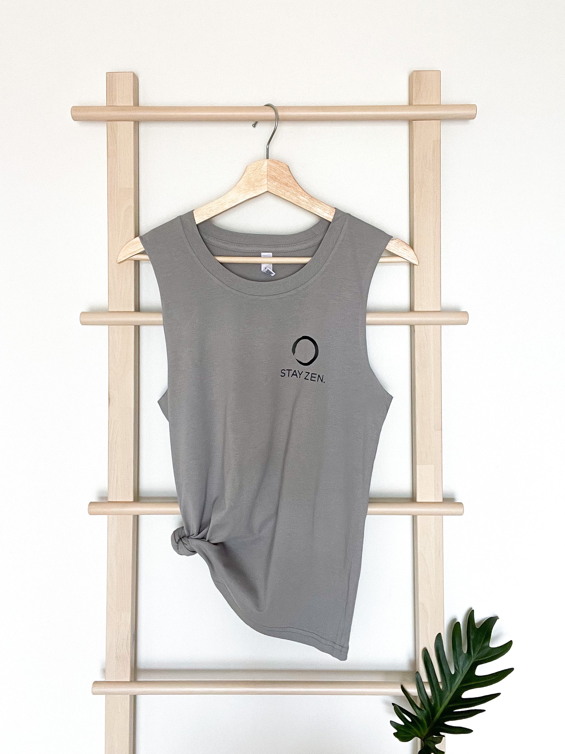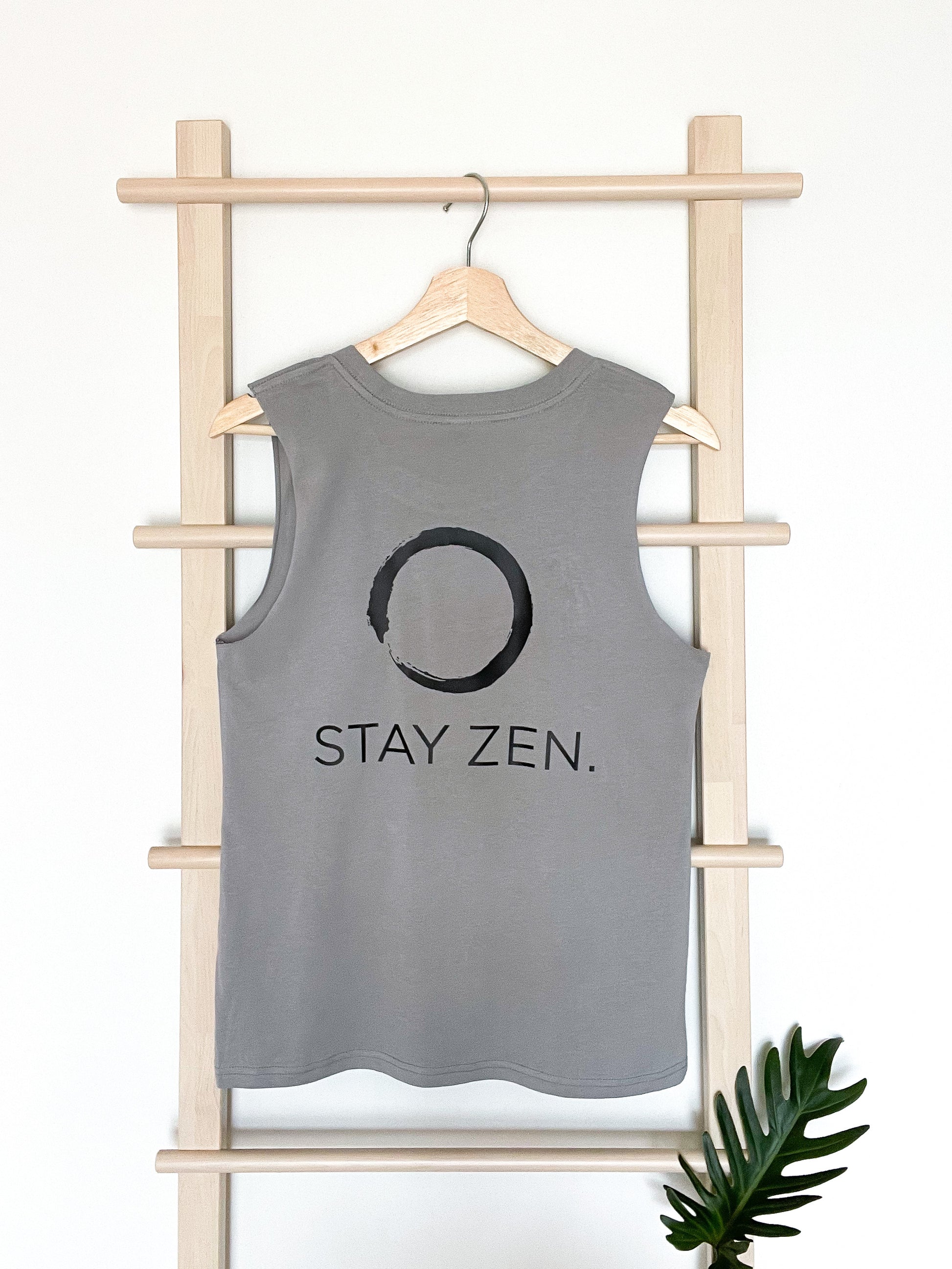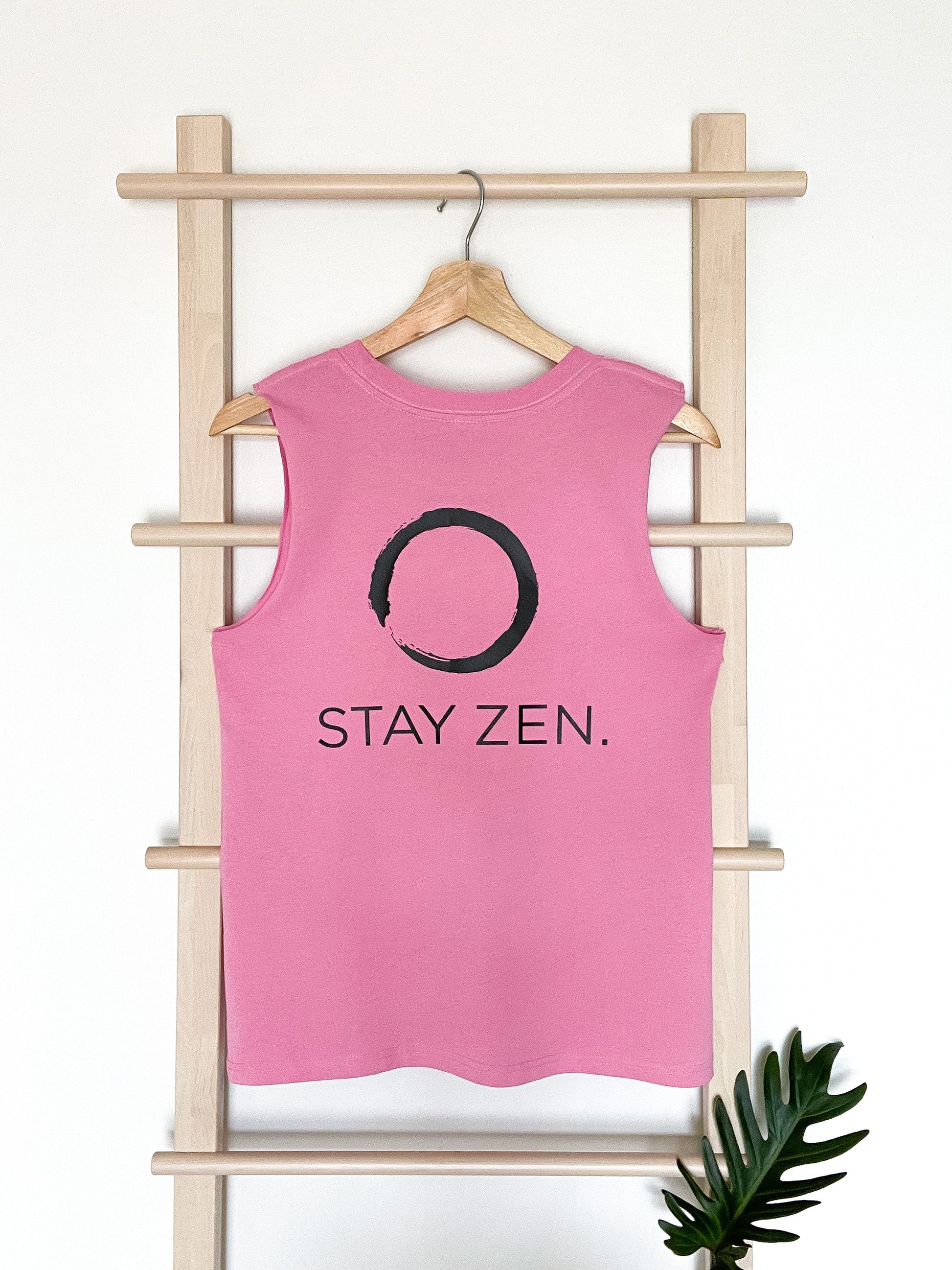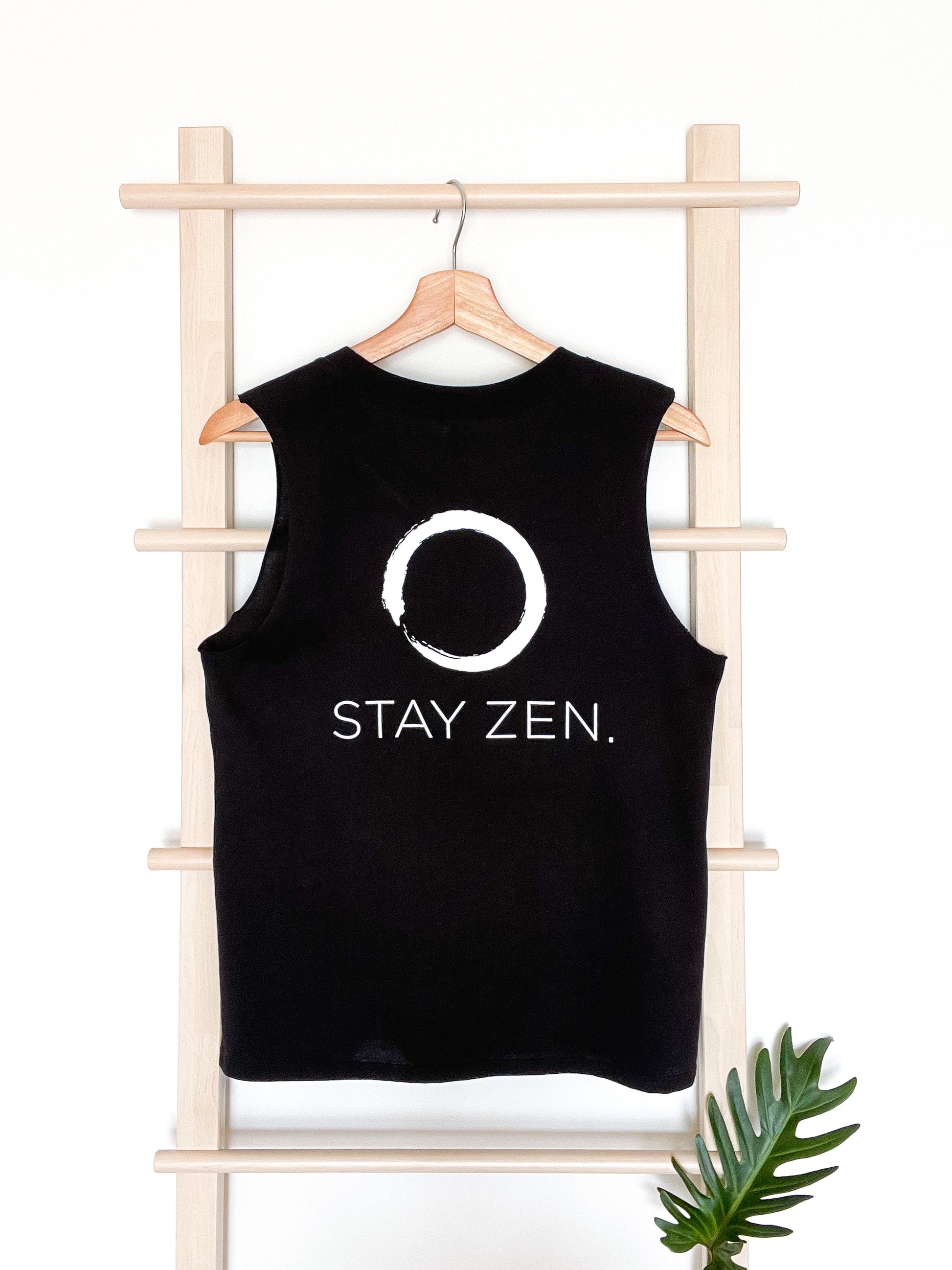 Sleeveless tank, raw armhole edges, neck ribbing, double needle hems, side seamed, preshrunk to minimise shrinkage